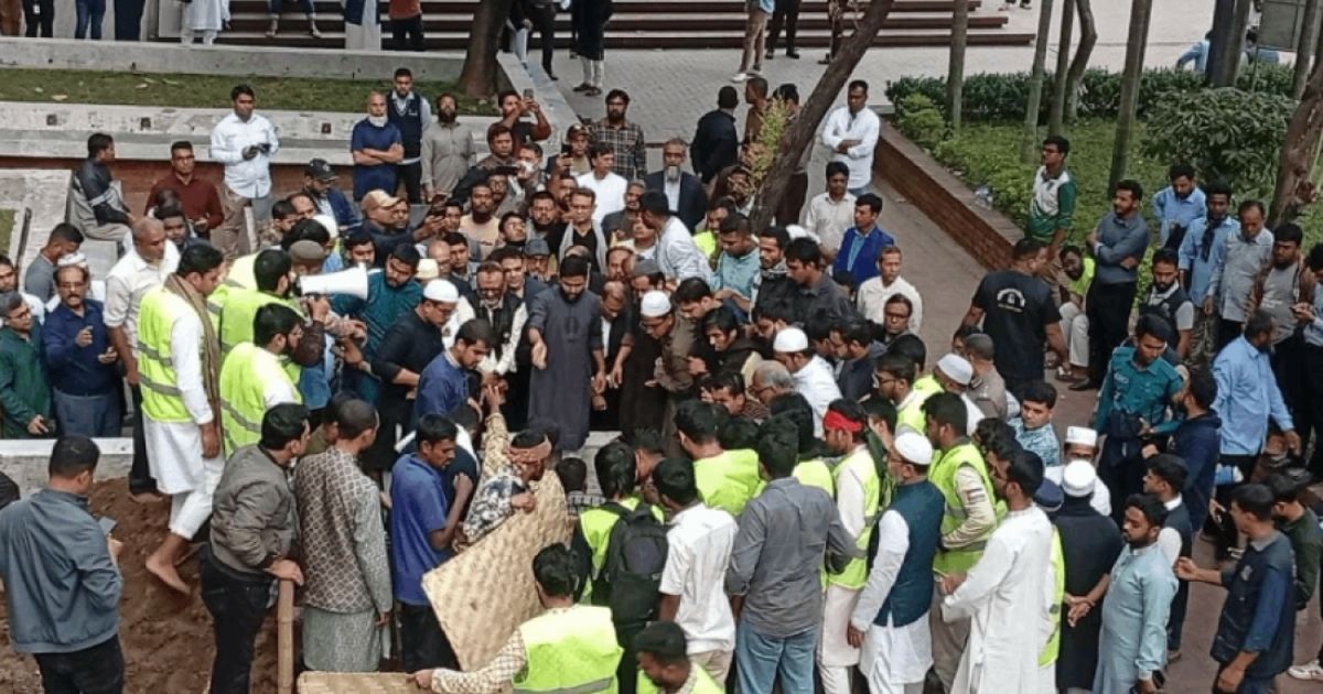 ঢাকা বিশ্ববিদ্যালয়ের কেন্দ্রীয় মসজিদ সংলগ্ন জাতীয় কবি কাজী নজরুল ইসলাম এর সমাধিসৌধের পাশে শহীদ শরীফ ওসমান হাদি’র দাফনের জন্য কবর