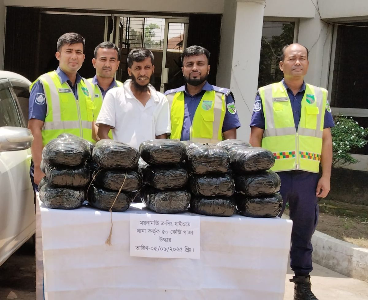 হাইওয়ে পুলিশের হাতে ৫০ কেজি গাঁজাসহ একজন ব্যক্তি আটক