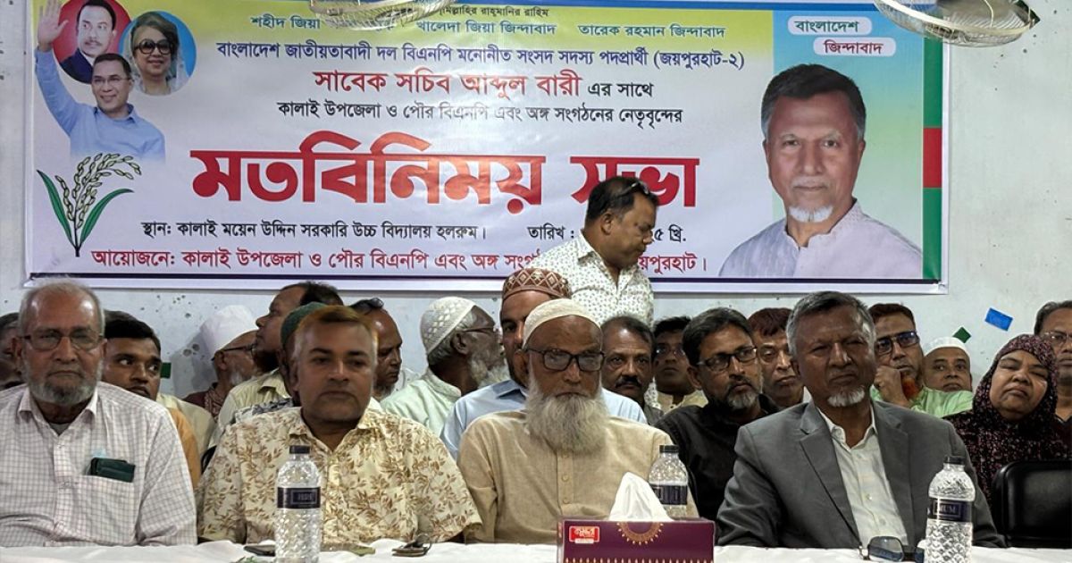জয়পুরহাট-২ আসনের বিএনপির প্রার্থী আব্দুল বারীর হাতে হাত রেখে কালাই উপজেলা ও পৌর বিএনপির নেতারা আনুষ্ঠানিকভাবে শপথ নেন। মঙ্গলবার বিকেলে