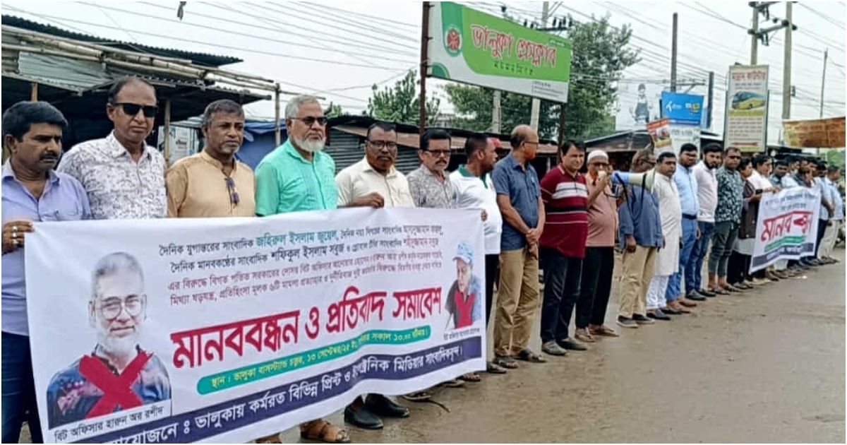 ভালুকায় সাংবাদিকদের বিরুদ্ধে মিথ্যা মামলা প্রত্যাহারের জন্য মানববন্ধন