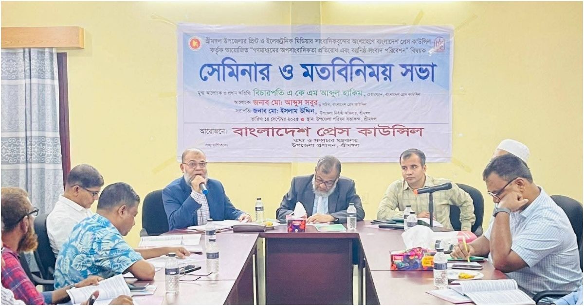 শ্রীমঙ্গলে অপসাংস্কৃতিক সাংবাদিকতা বিরুদ্ধে বাংলাদেশ প্রেস কাউন্সিলের সচেতনতামূলক সেমিনার