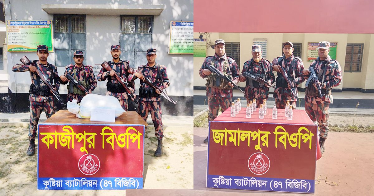 কুষ্টিয়া ও মেহেরপুরের সীমান্তে বিজিবির বিশেষ অভিযান: মাদক ও ভারতীয় পণ্য উদ্ধার