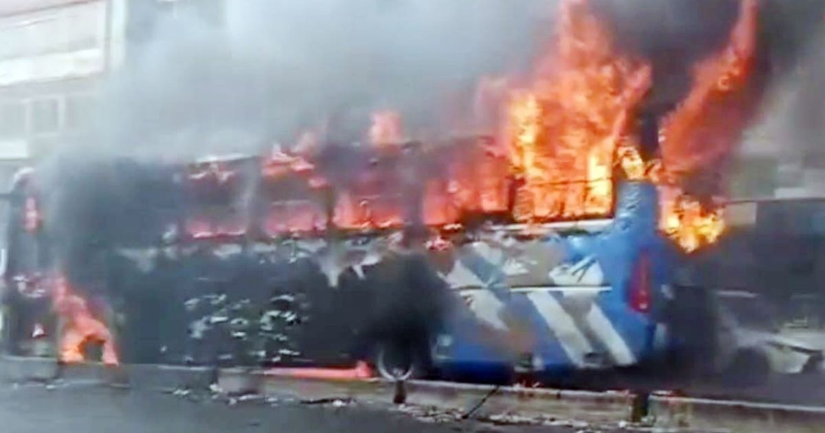 মোটরসাইকেলের সঙ্গে সংঘর্ষে বাসে আগুন