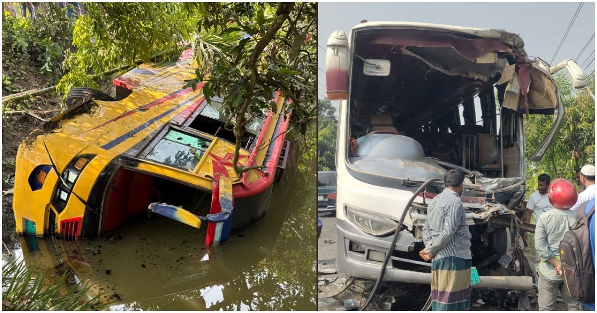দাঁড়িয়ে থাকা বাসে চলন্ত বাসের ধাক্কার ঘটনায় ২০ আহত