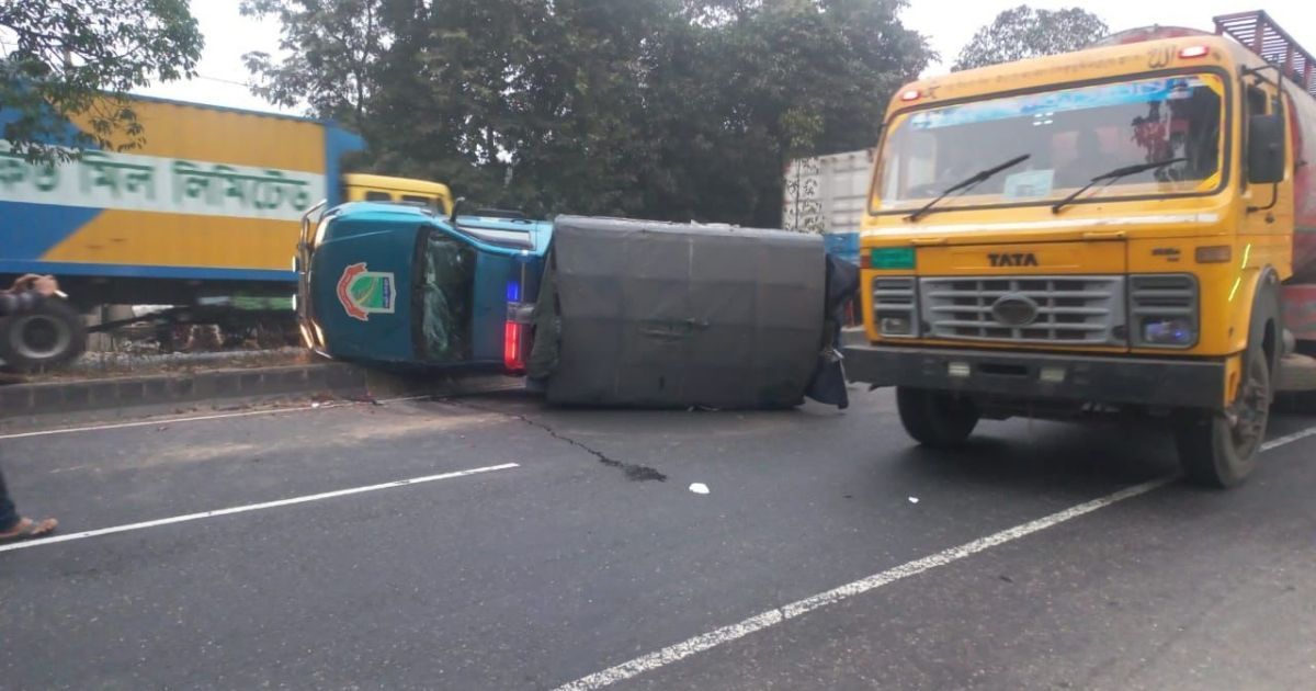 গজারিয়ায় পুলিশের গাড়ির ওপর কাভার্ড ভ্যানের ধাক্কা, ২ পুলিশ আহত