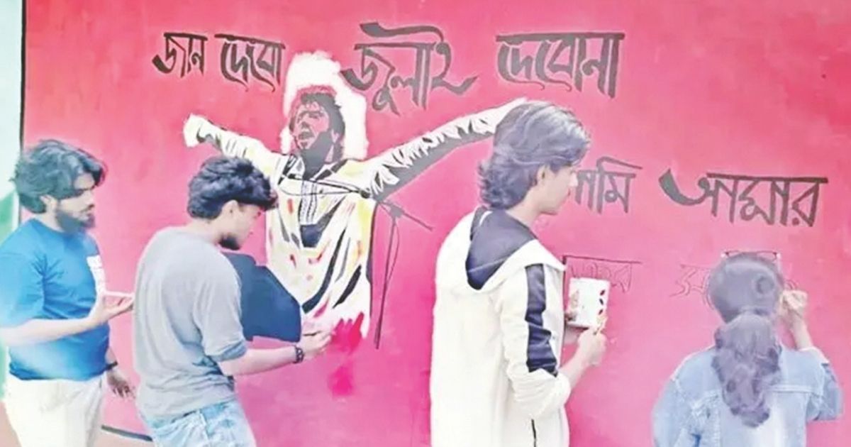 ঝালকাঠিতে হাদির স্মরণে দেওয়ালে দেওয়ালে গ্রাফিতি